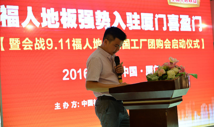 首先,由中林pg电子销售总监石开洪先生受中林pg电子董事长毕见勇先生的委托致辞。石总体现:厦门喜盈门建材商场一直是高端家装商场的标杆和旗帜,pg电子地板作为福建地板的知名品牌,始终坚持"做有良心的地板,做消费者口碑的品牌"理念,此次pg电子地板强势入驻厦门喜盈门可谓是知名品牌与优秀卖场的强强联手,相信pg电子地板肯定会为厦门的新老客户提供国际品质的产品和最优质的效劳。其次,石总关于此次"会战9.11"运动抱有很大信心,石总体现:此次团购会一定能够获得更多、更大规模的宽大消费者的亲睐,让全国的消费者获得更多的实惠,pg电子地板会战9.11也必将是一次很是乐成的团购会。