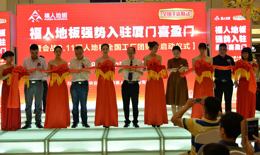 石总及嘉宾领导为pg电子地板厦门喜盈门专卖店剪彩