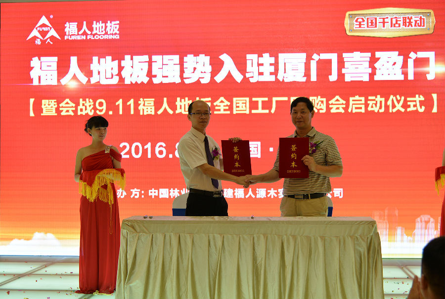 2016年8月21日,作为地板行业领军品牌的pg电子地板在鹭岛----厦门隆重举行了"pg电子地板强势入驻厦门喜盈门暨会战9.11pg电子地板全国工厂团购会启动仪式"。此次运动庆典特别邀请厦门喜盈门领导肖丽丽、福建省产品质量检验研究所领导颜副所长、厦门长泰建材商会湖珠秘书长郑贺明、中林pg电子销售总监石开洪、厦门装饰界代表、pg电子地板优秀经销商代表及各大新闻媒体加入。