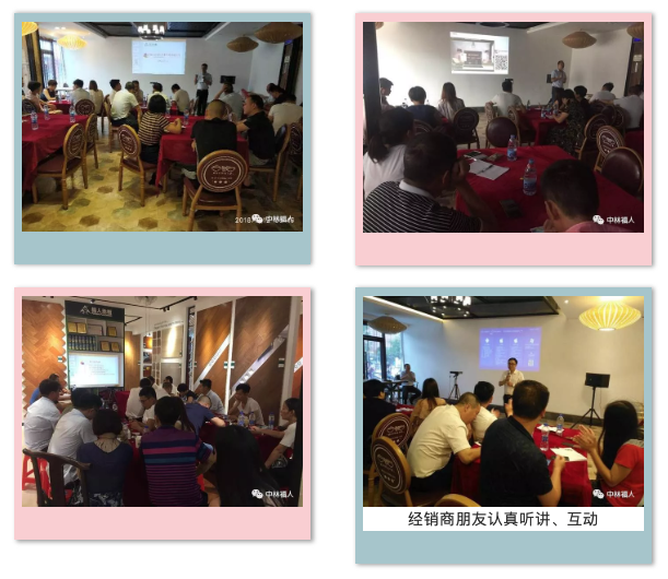 10:40-12:00销售副总监洪总进行了实木基础知识培训。洪总围绕实木生产流程、实木装置注意事项、实木售后效劳等经销商关注的实木专业知识进行培训。